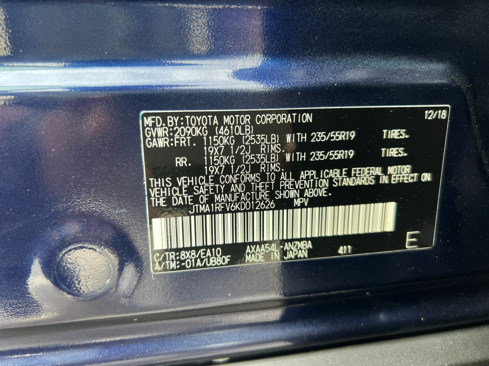 Model: XLE – Full Option