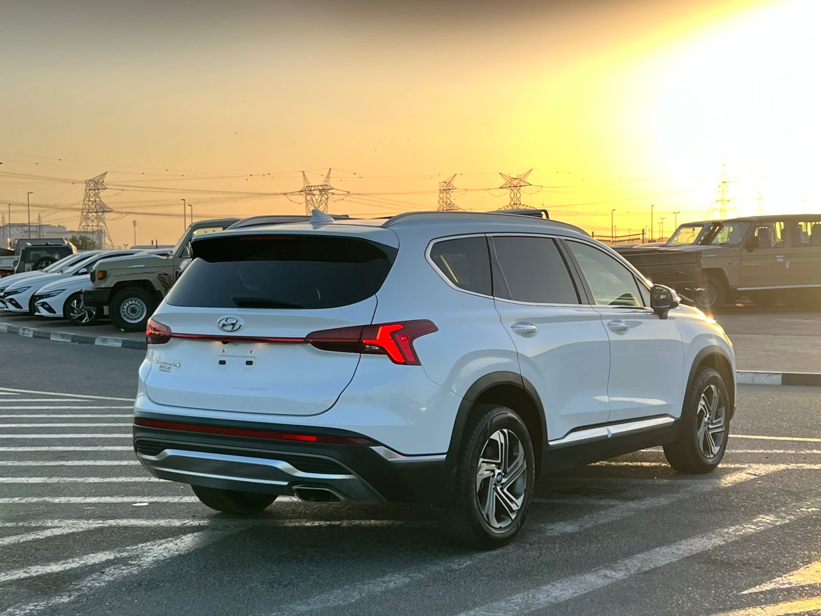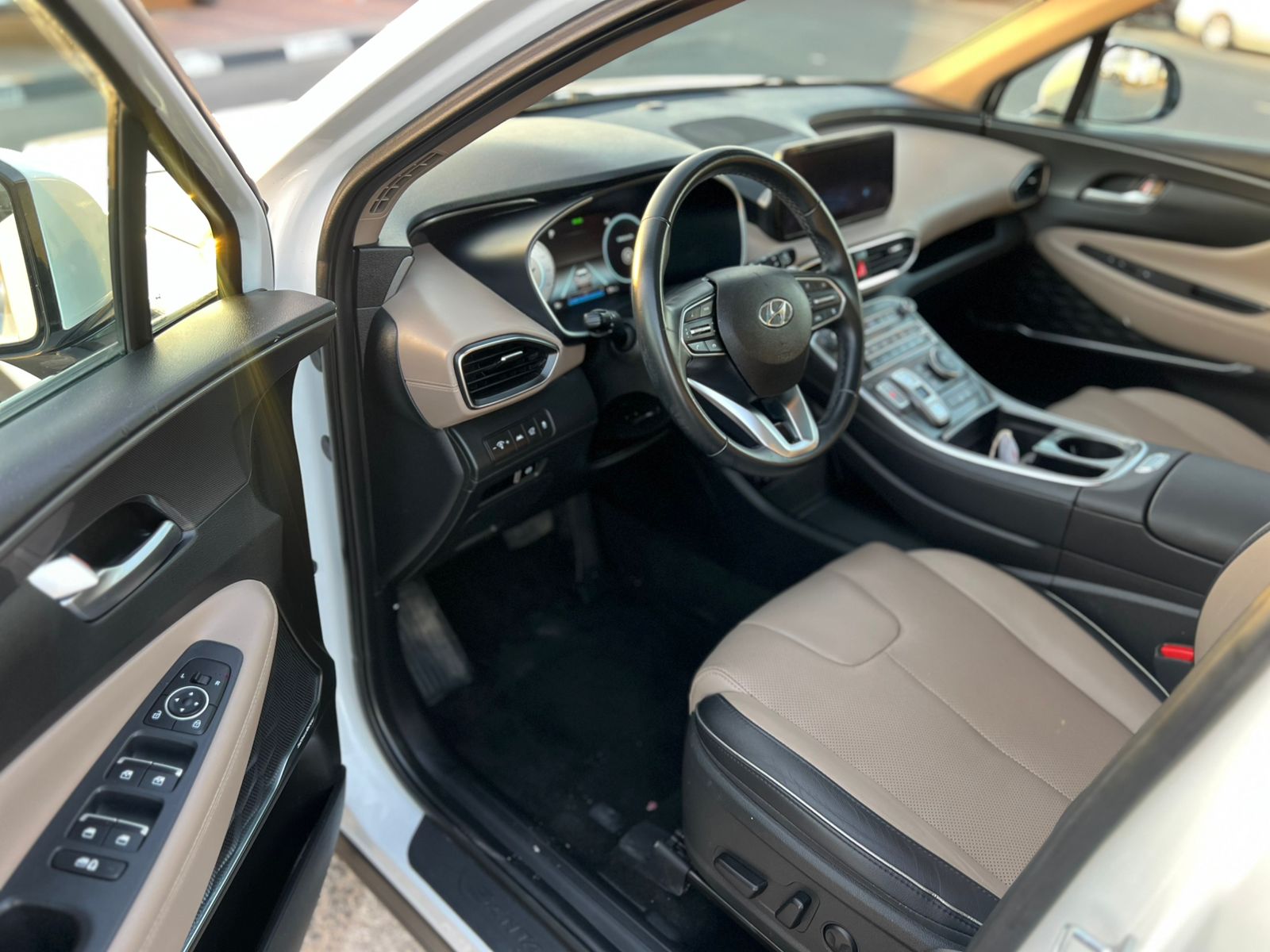 2022 Hyundai Santa Fe SEL Full Option powered by a 2.5L V4 engine, offering a comfortable and refined driving experience. The vehicle features a panoramic sunroof, leather seats, and a rear camera, making it a well-equipped SUV for daily driving and long journeys.