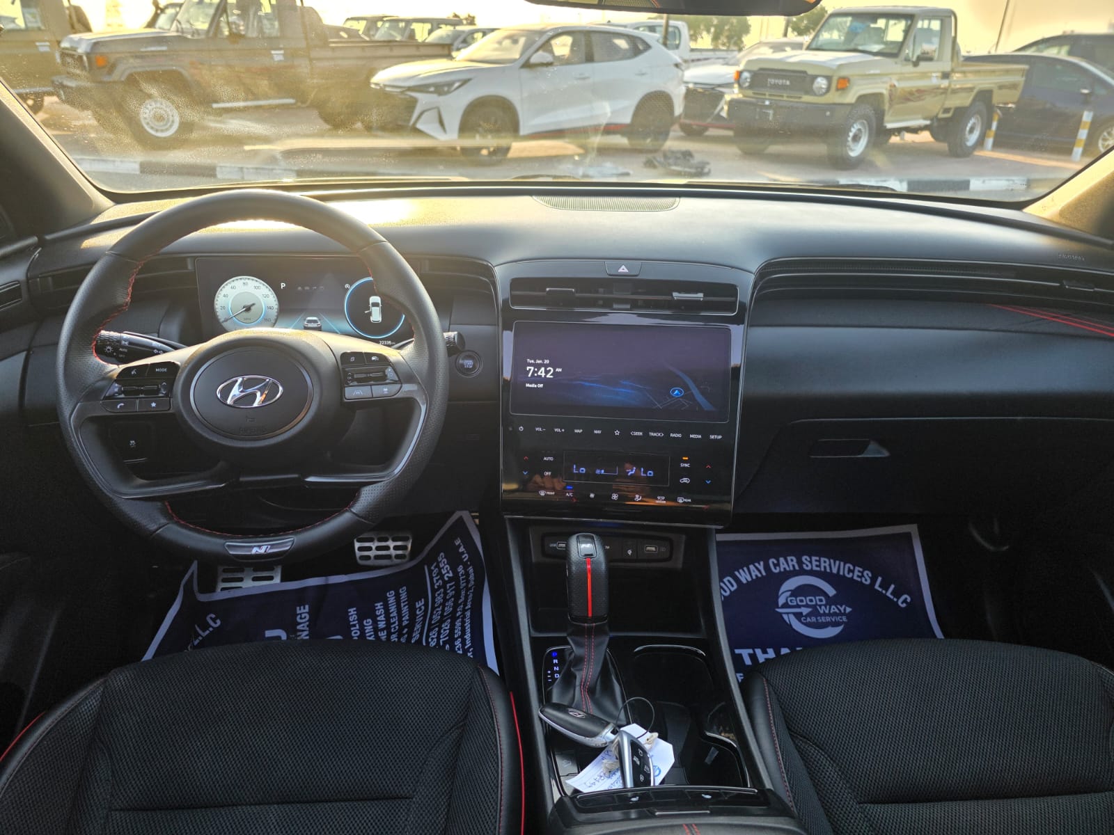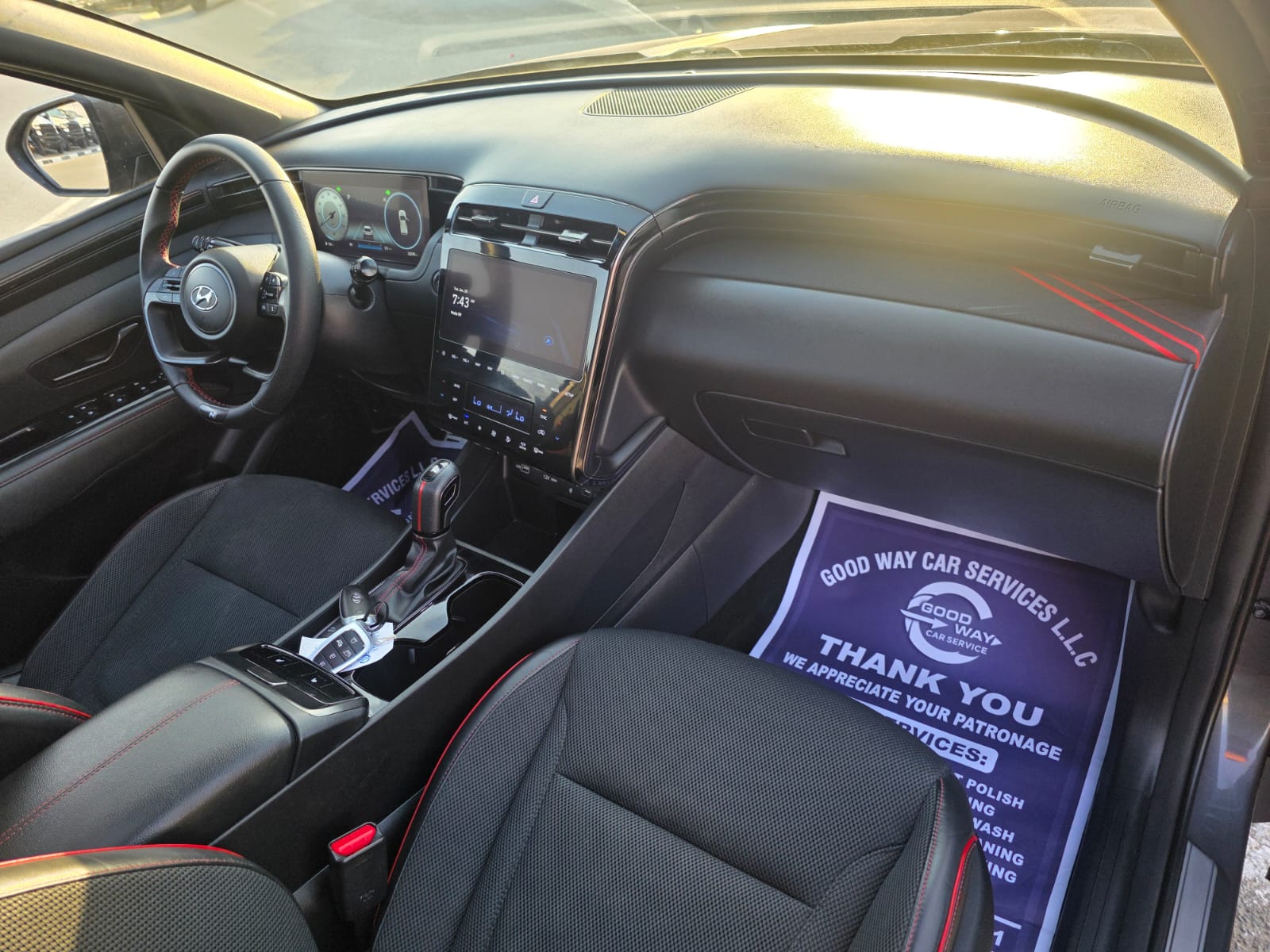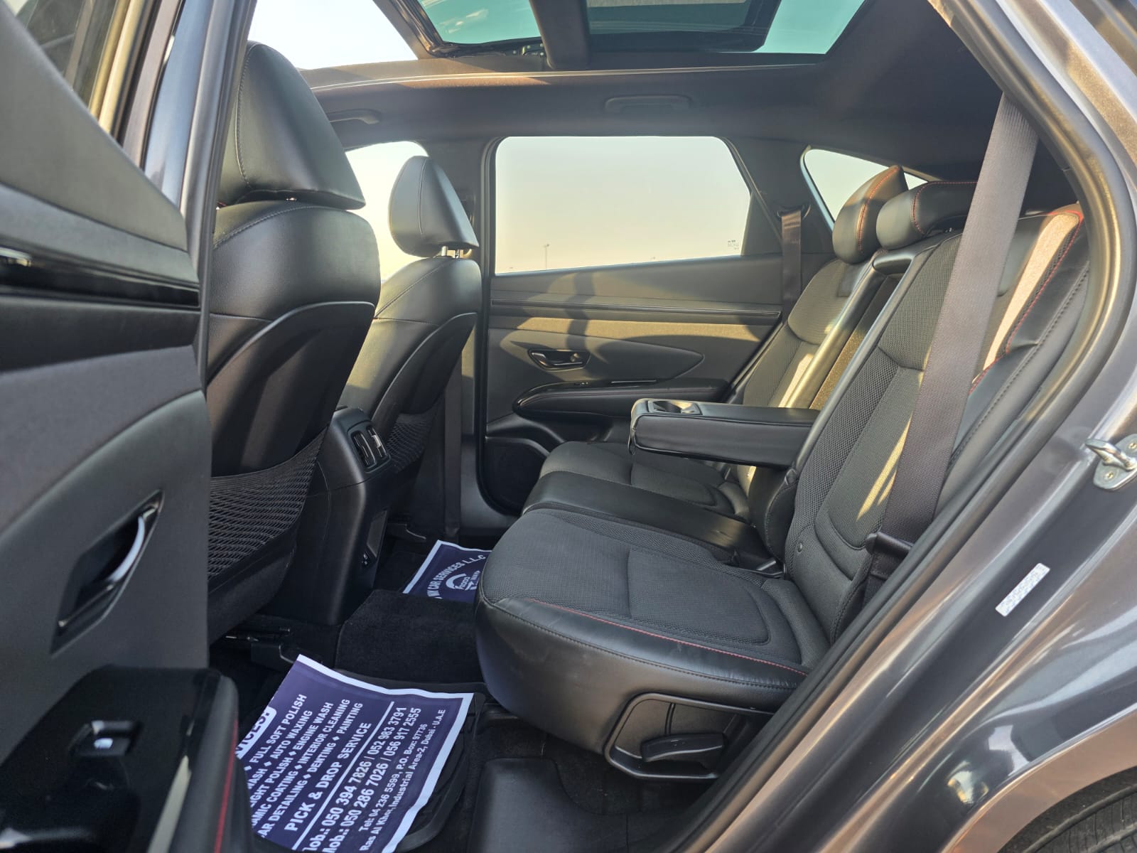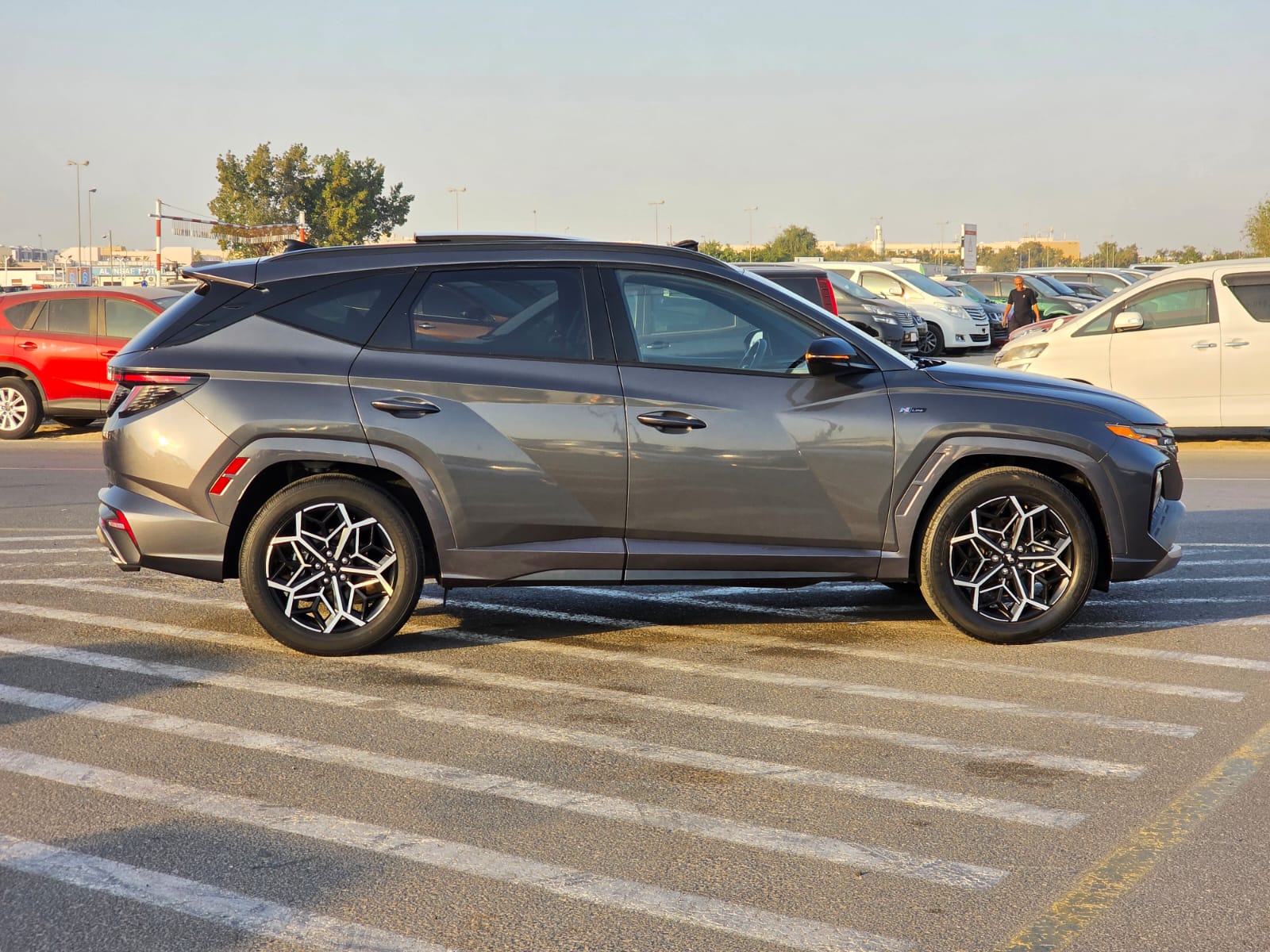 2023 Hyundai Tucson N Line Sport Edition with a 2.5L V4 engine, offering a sporty and modern driving experience. The vehicle comes with a panoramic roof, original leather seats, push button start, and automatic trunk, combining comfort with premium convenience.